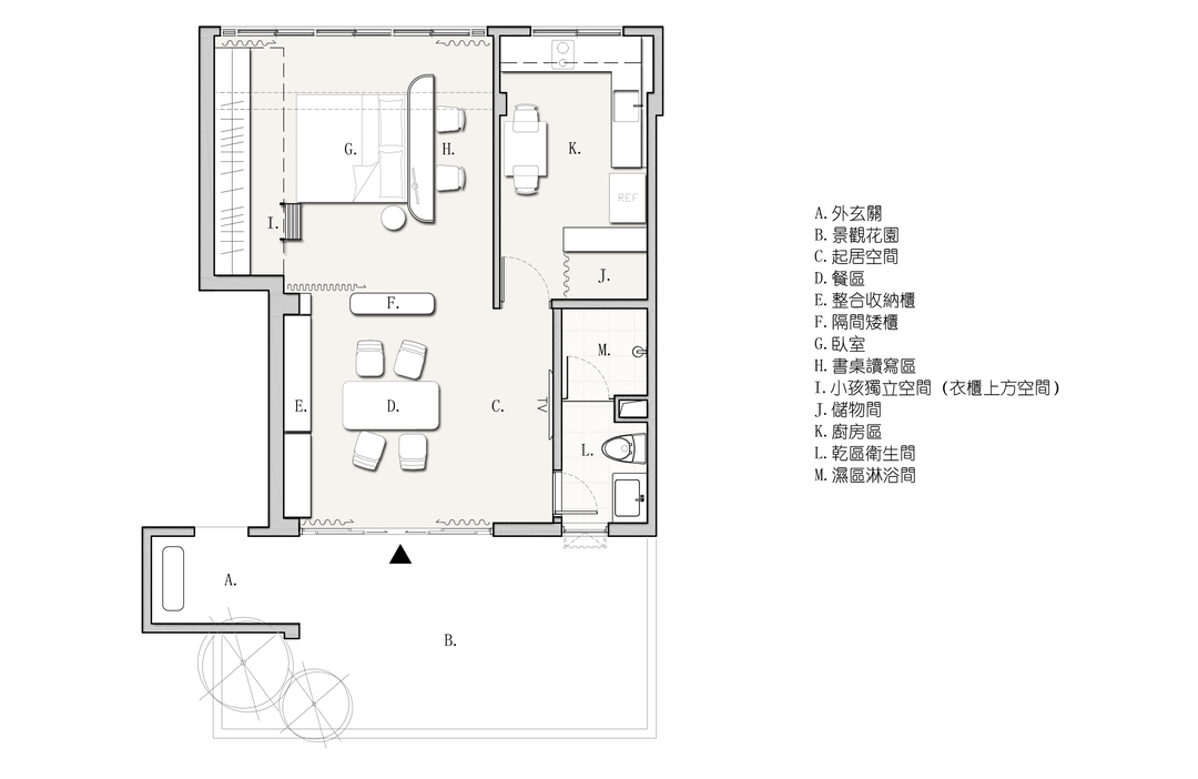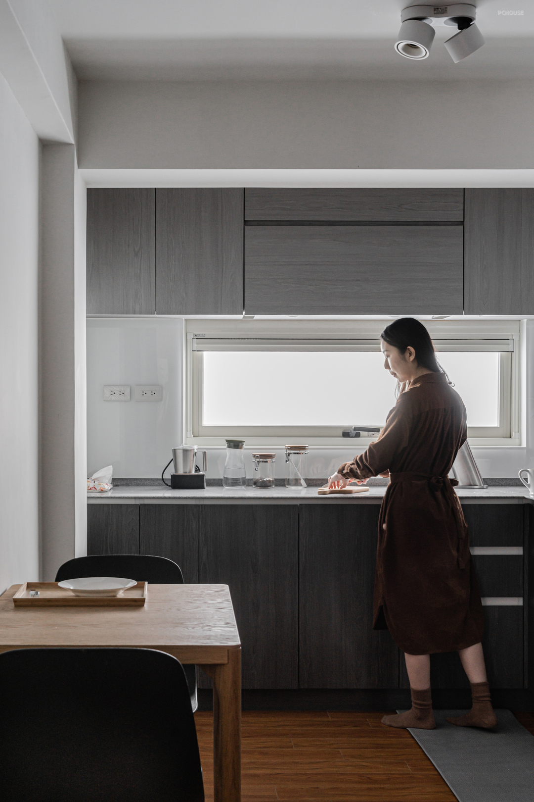 增加完整的厨房空间,除了提供舒适的厨艺环境外,增加厨房设备,有效率的动线设计,让使用者从冰箱中取出食材、清洗、切配到烹煮上菜的一系列操作流程非常顺畅。