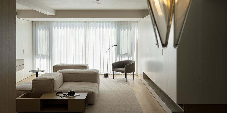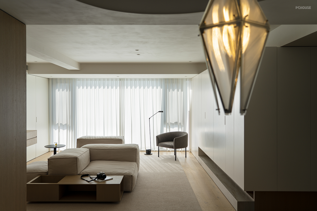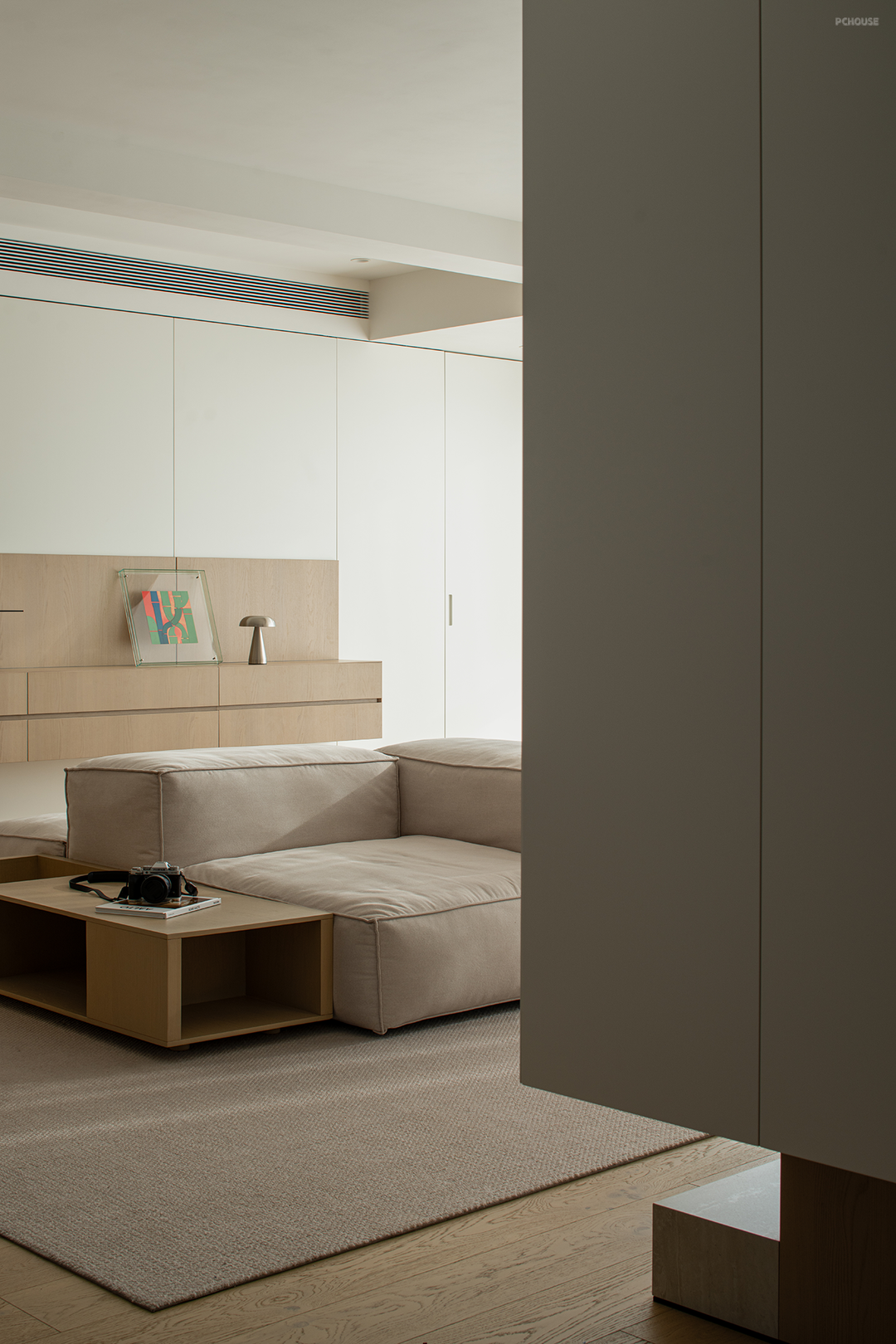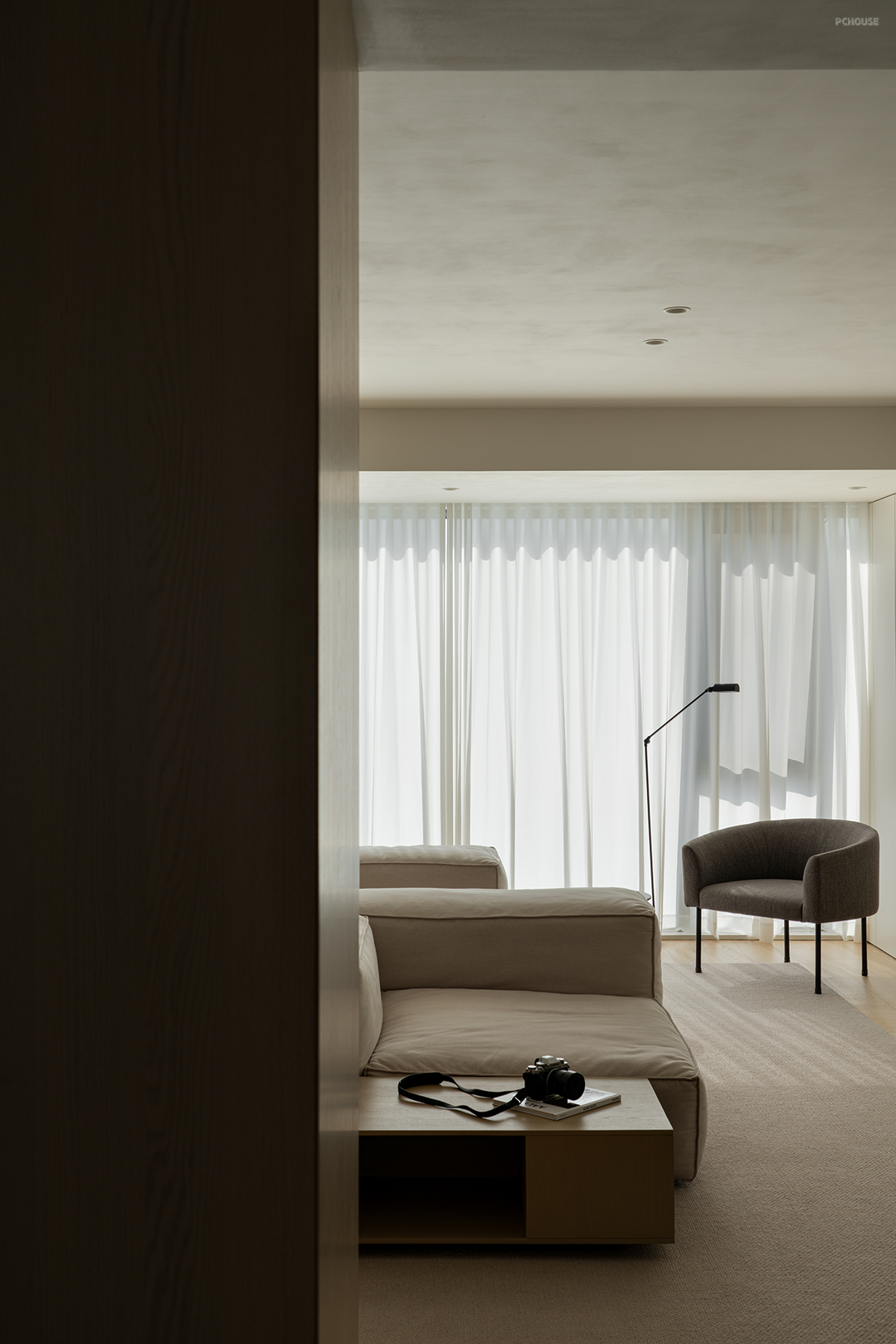 不止一味追求极简形式,结合人的动态轨迹、生活色彩与个性喜好,让空间成为内心世界的另一重映射。借助自然光,调和浓淡的层次感,更温暖,也更纯粹。
