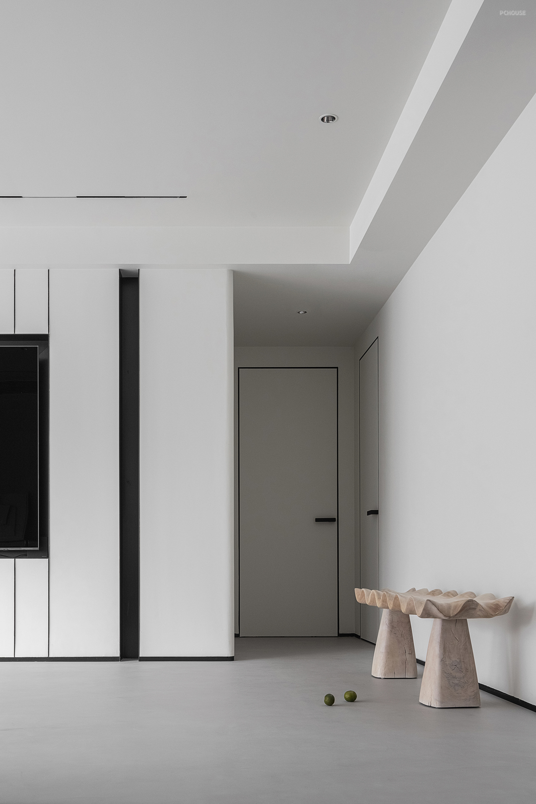 家中过渡的边角几乎都是弧形的,这种形态的温润与极简的轮廓完美地结合在一起,原本的建筑结构也保留着质朴的组合。