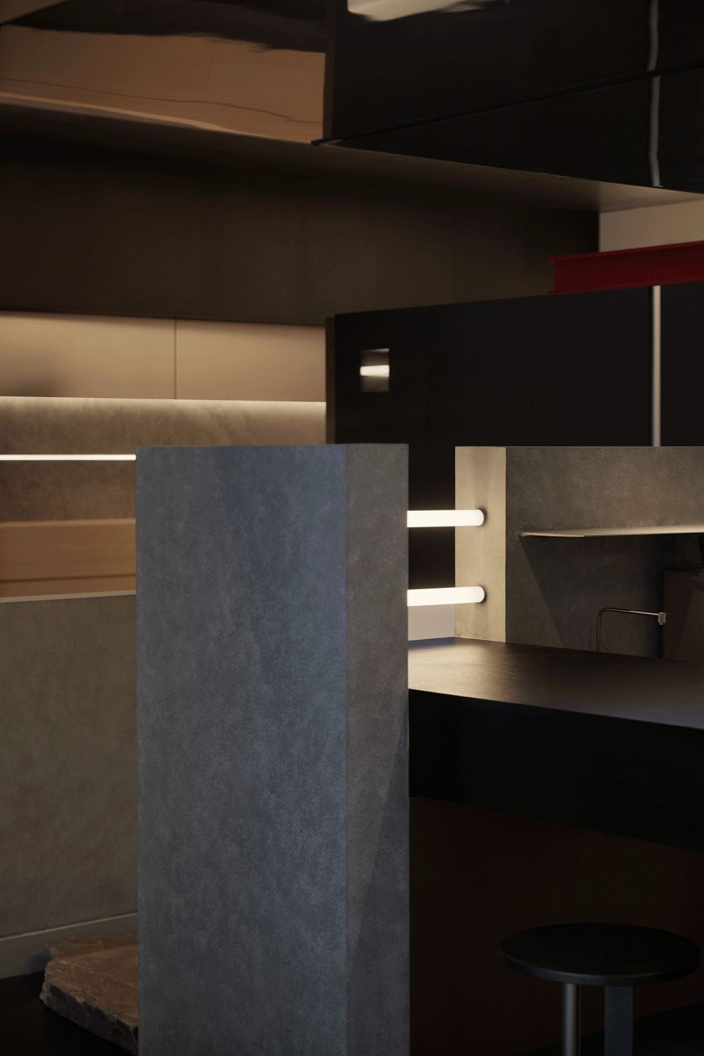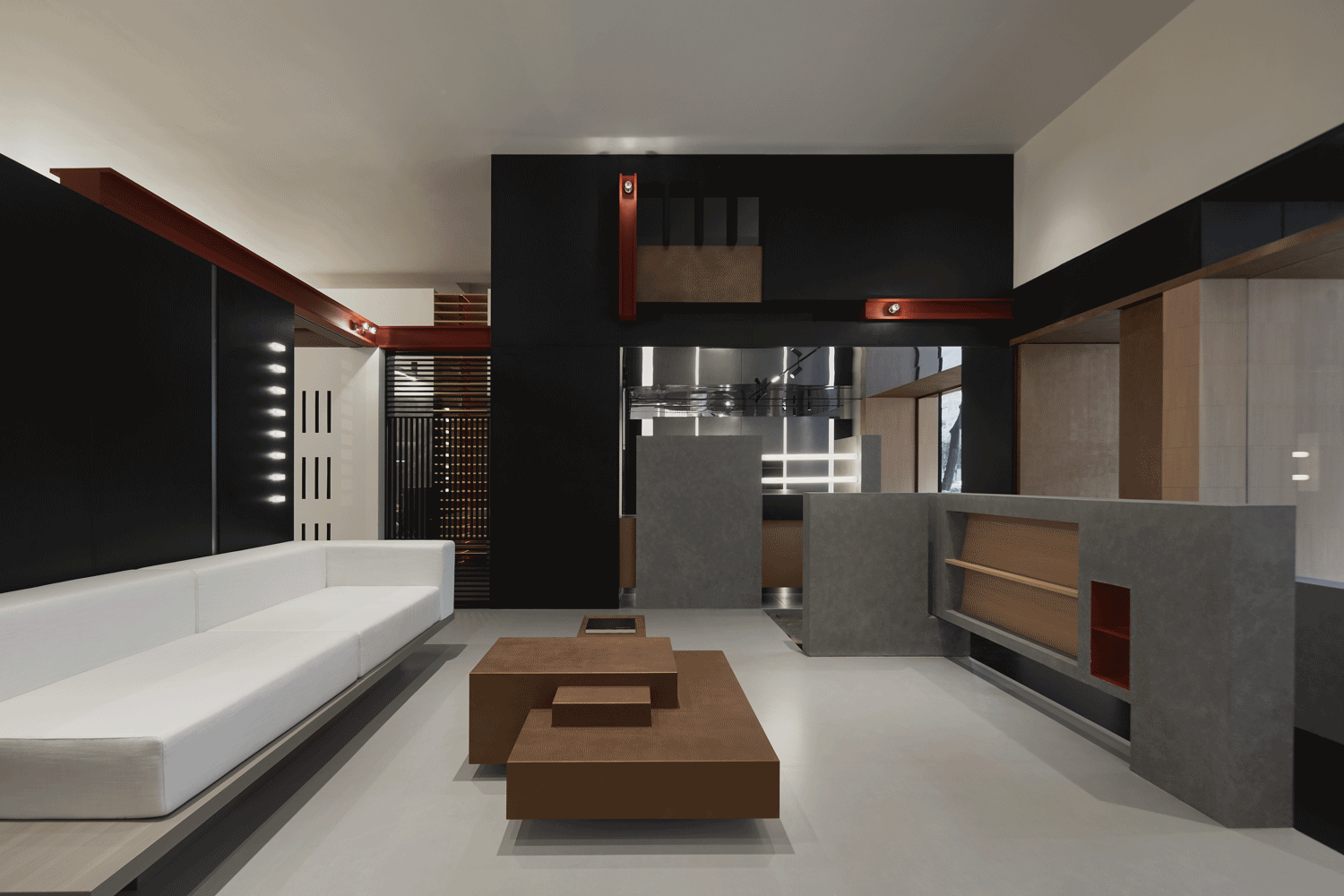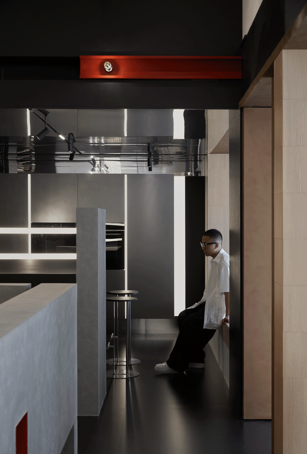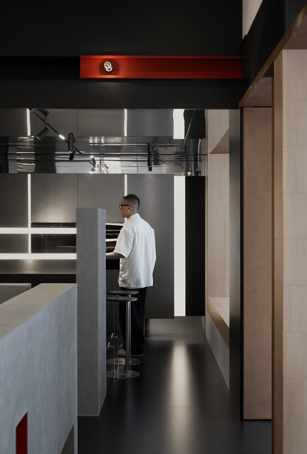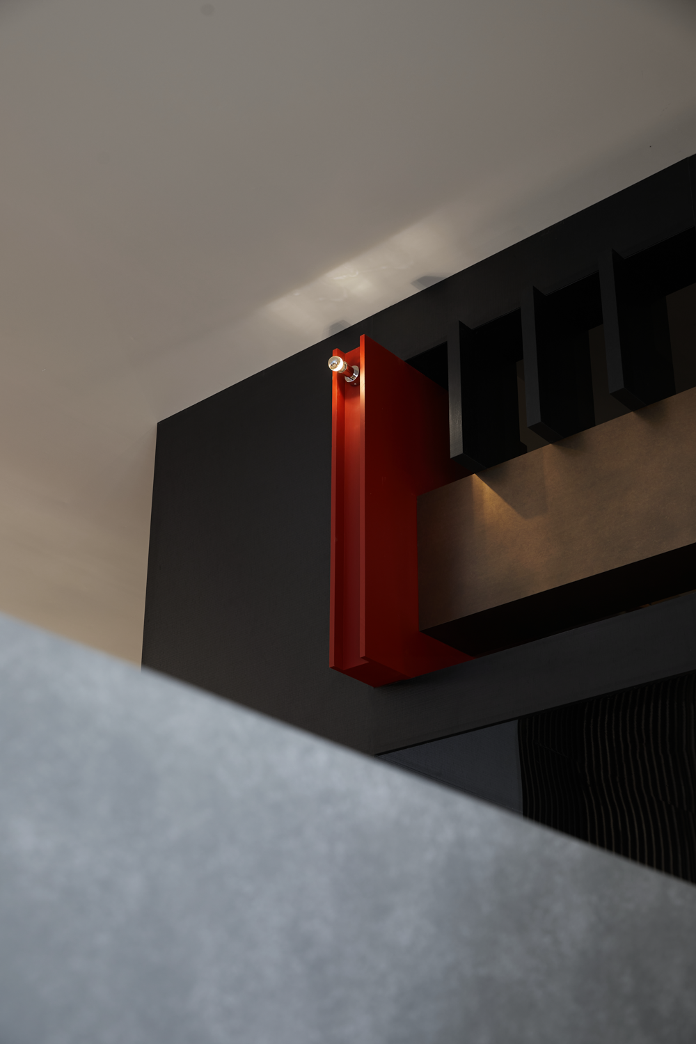 红色的金属结构在不同区域的出现,成为贯穿空间始终的精神脉络,不断强调着区域间紧密的联系。