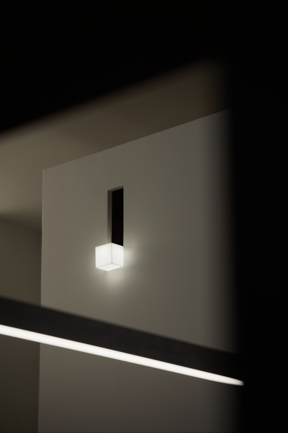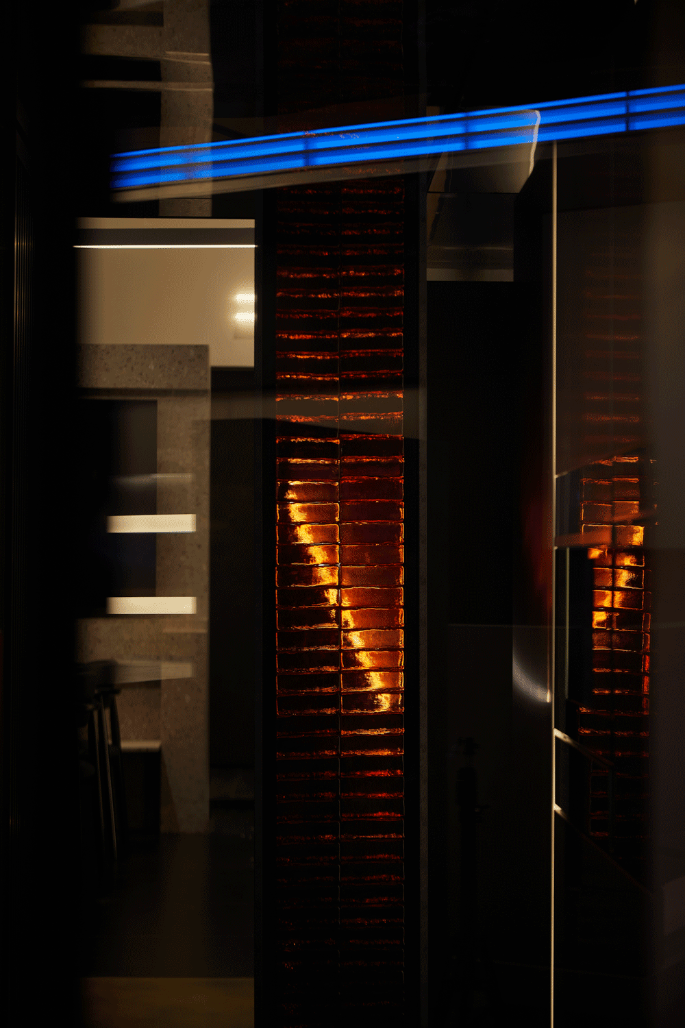 而这种敞开式的处理方式在表达融合的整体属性同时,通过半遮半闭的墙体、高低错落的地面关系,以及人造灯光的走势路径划分出清晰的功能分区。